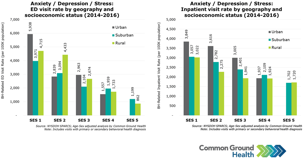 Anxiety/Depression/Stress: ED & Inpatient Visit Rate by Geography & Socioeconomic Status