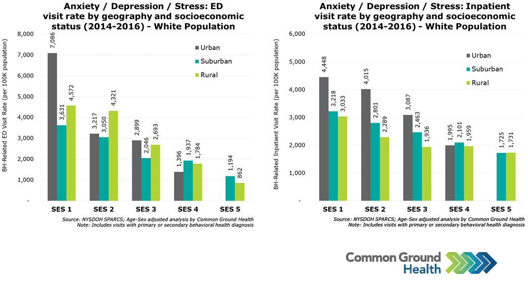 Anxiety/Depression/Stress: ED & Inpatient Visit Rate by Geography & Socioeconomic Status, White Population