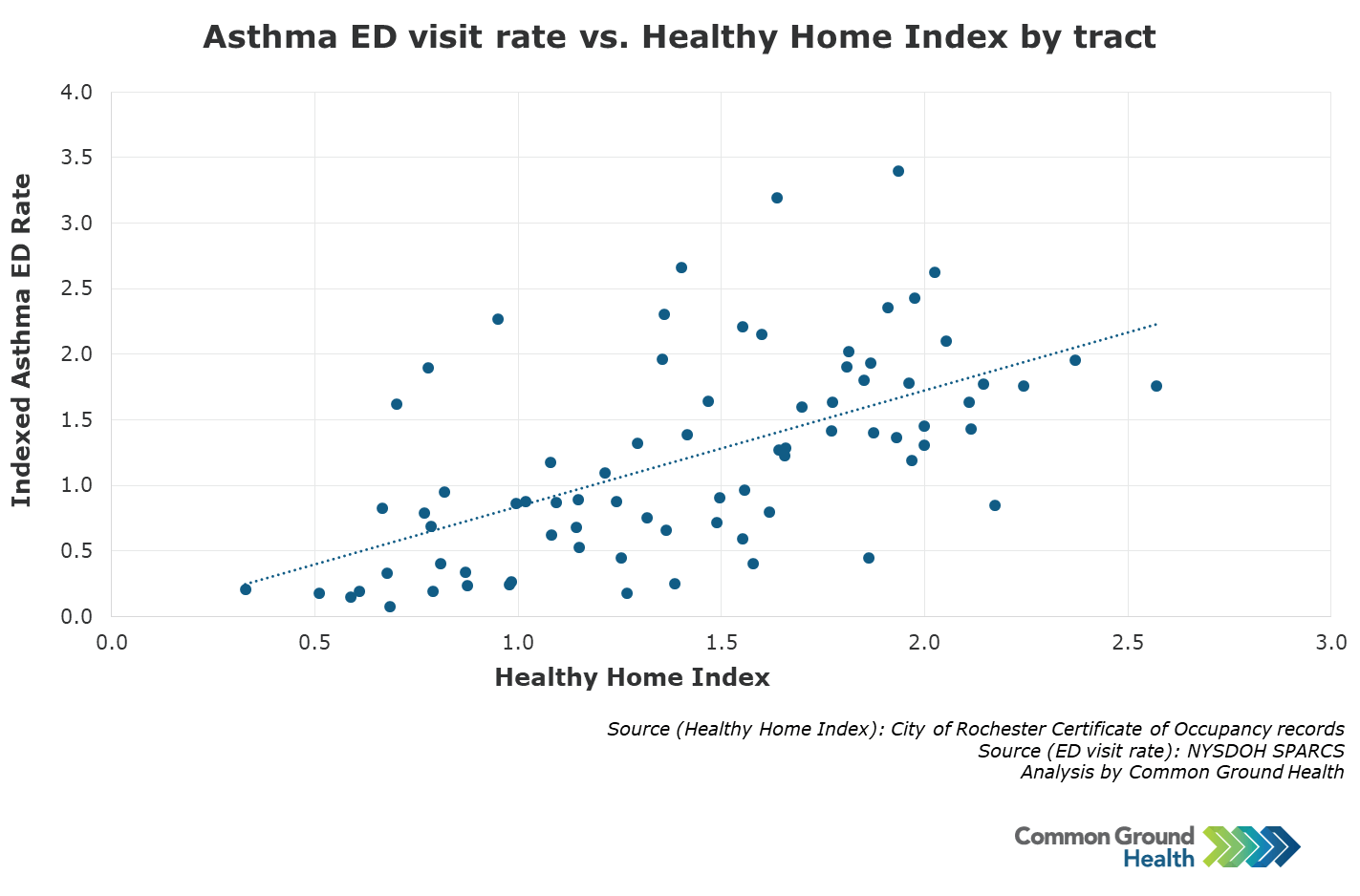 Asthma Emergency Department Visit Rate vs Healthy Home Index by Tract