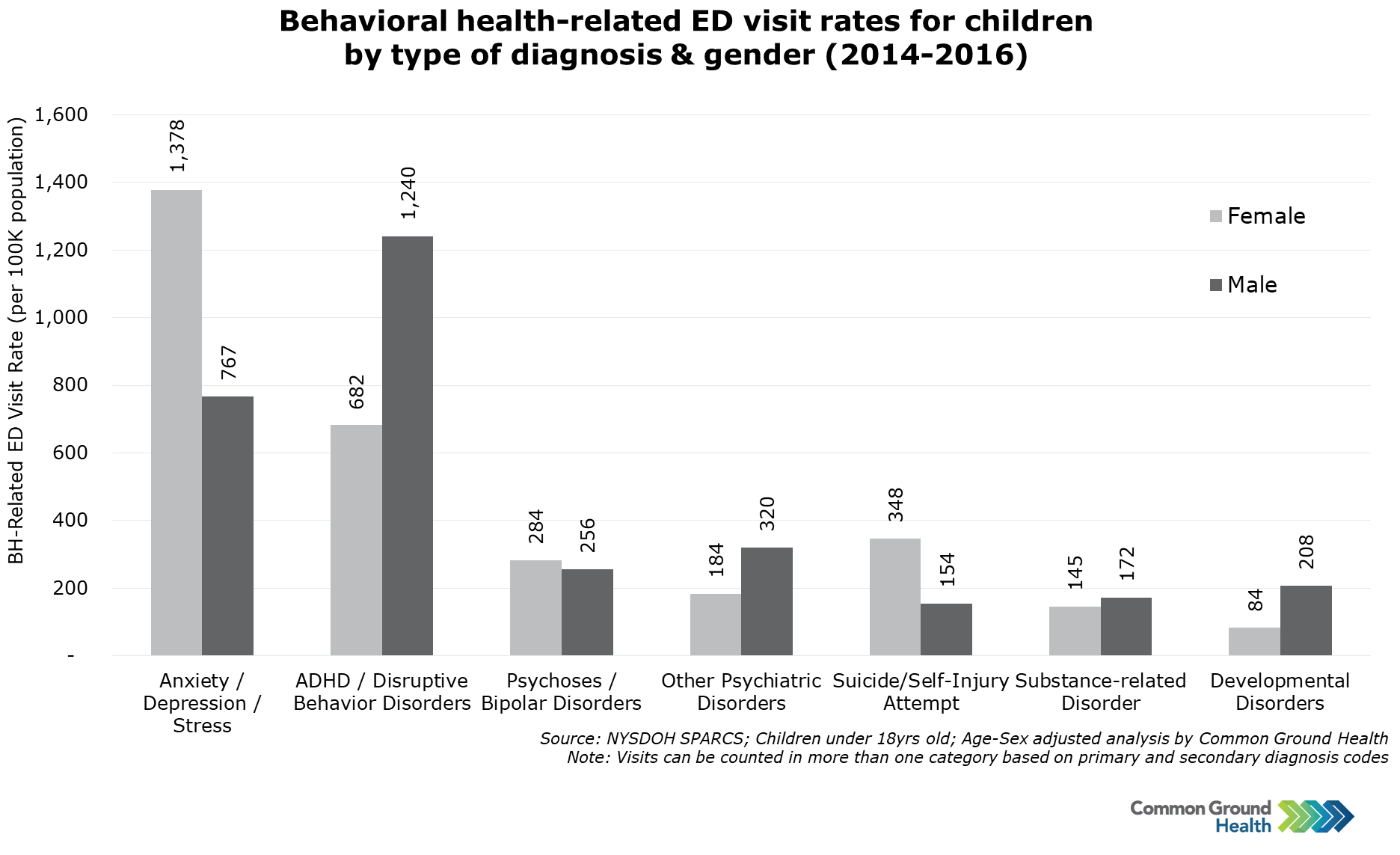 Behavioral Health-Related ED Visit Rates for Children, Diagnosis & Gender