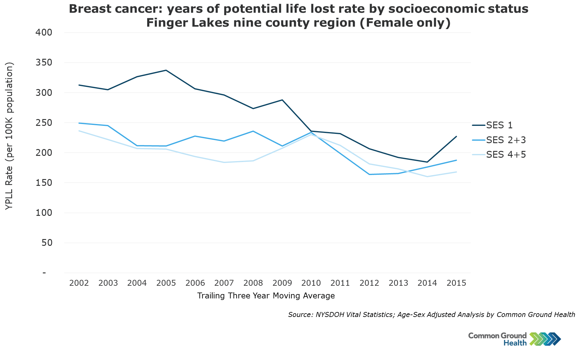 Breast Cancer: Years of Potential Life Lost Rates by Socioeconomic Status, Female