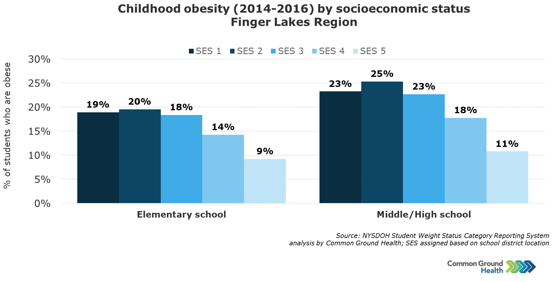 Methodology note: The SES index ranking was developed by Common Ground Health and calculated using a variety of socioeconomic indicators from the American Community Survey including average income, poverty rates, education levels, housing value, and homeownership. Each ZIP code is assigned a socioeconomic (SES) index ranking from 1 to 5. The lower SES ZIP codes tend to have lower average income, higher poverty rates, lower prevalence of college degrees, etc.