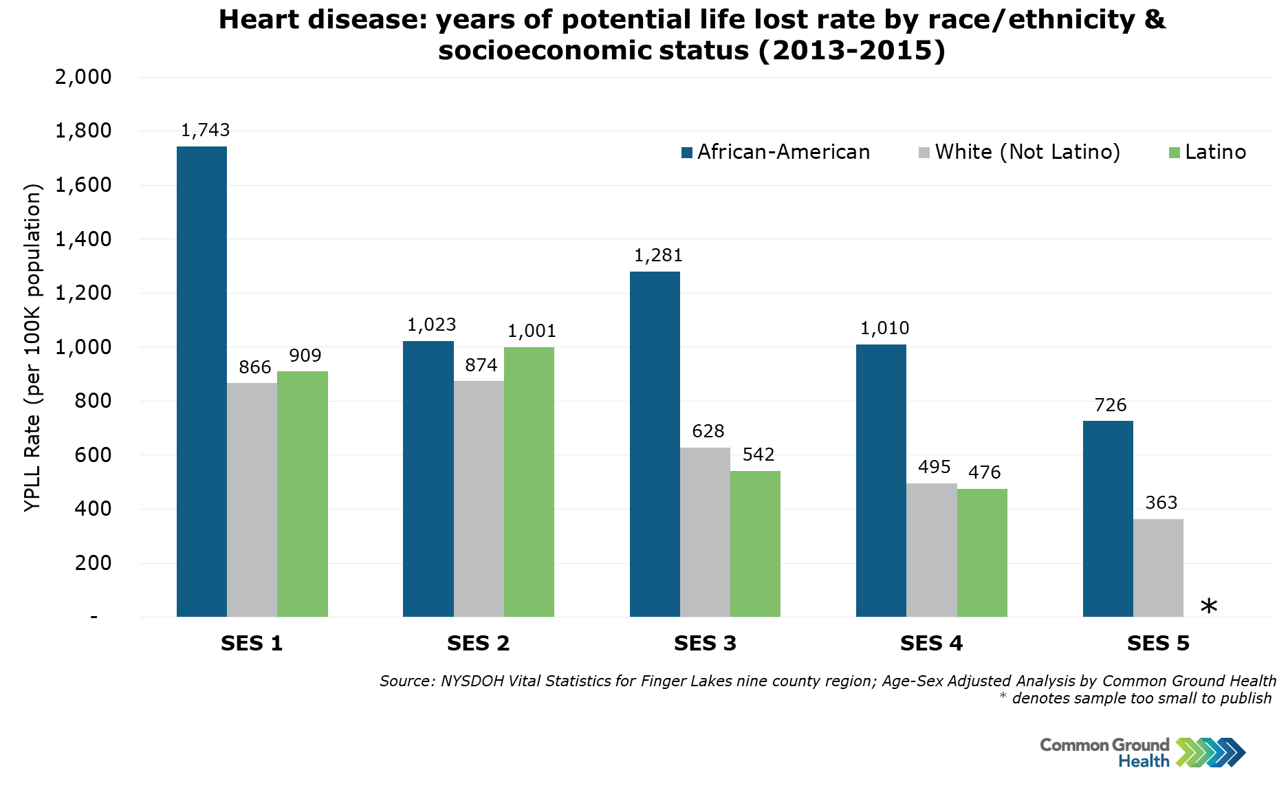Heart Disease: Years of Potential Life Lost Rate by Race/Ethnicity & Socioeconomic Status