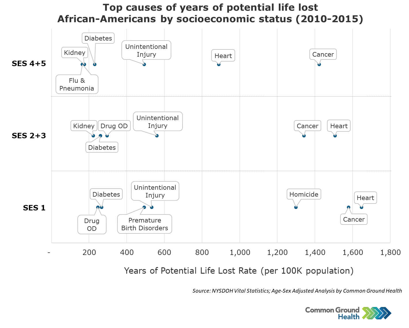 Top Causes of Years of Potential Life Lost - African-American by Socioeconomic Status