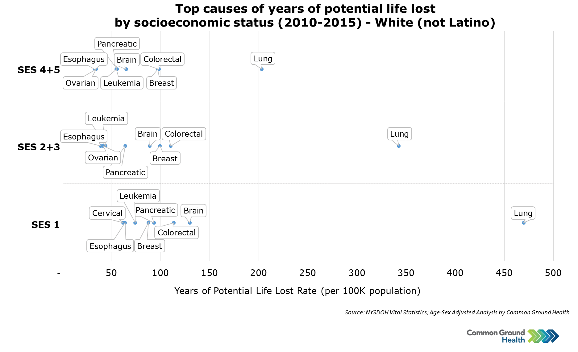 Top Causes of Years of Potential Life Lost by Socioeconomic Status, White (not Latino)