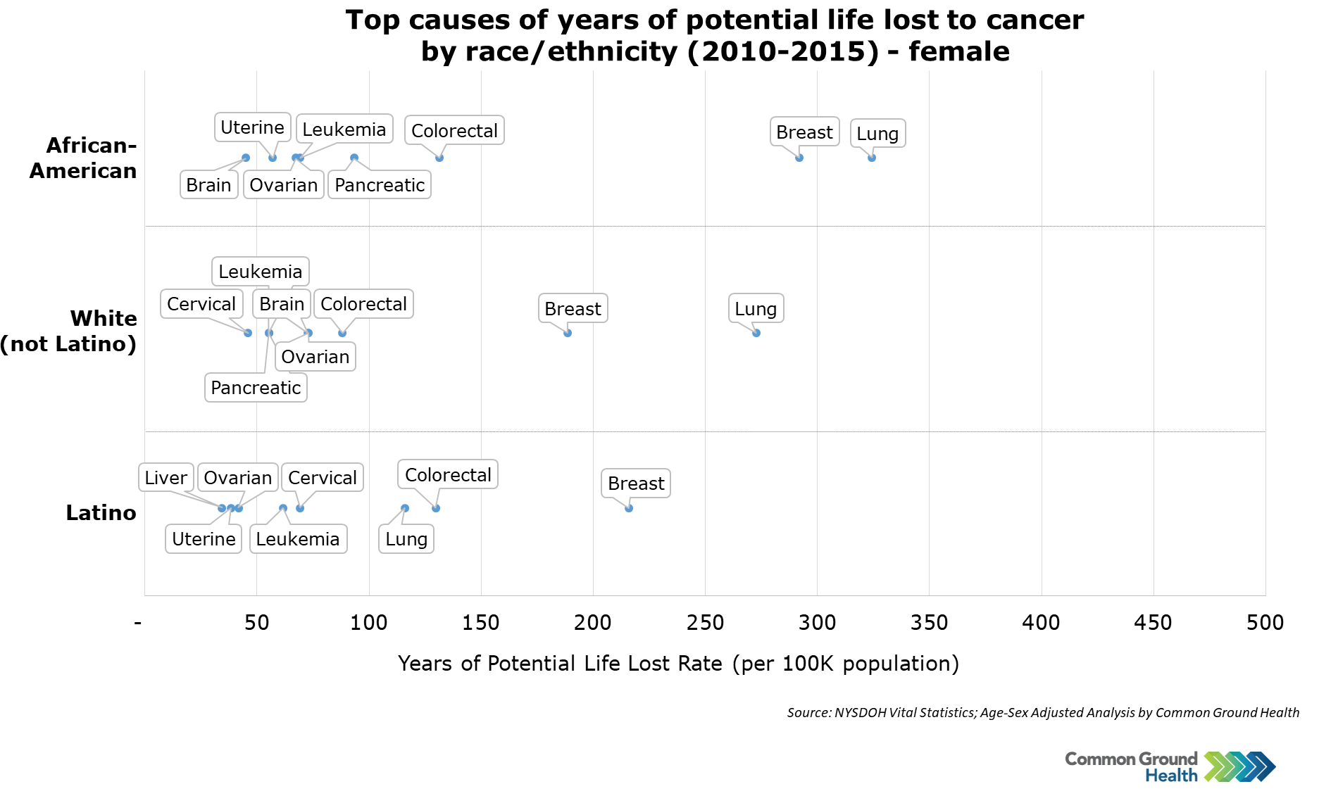 Top Causes of Years of Potential Life Lost to Cancer by Race/Ethnicity, Female